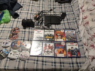 Consola PlayStation 2 en color negro. Incluye dos mandos y varios juegos. - Consola PlayStation 2 - 2 mandos y memory card - Varios juegos: GTA San Andreas, Moto GP 3, Moto GP 4, WRC 4, Fila 06 y VRally 3.