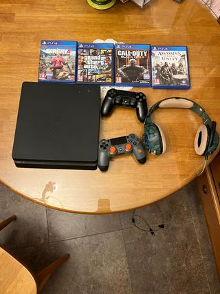Se vende ps4, con juegos, 2 mandos y unos auriculares. Fifa 21, 22 y 23 tambien en disco Tiene todos los cables, funciona perfectamente.