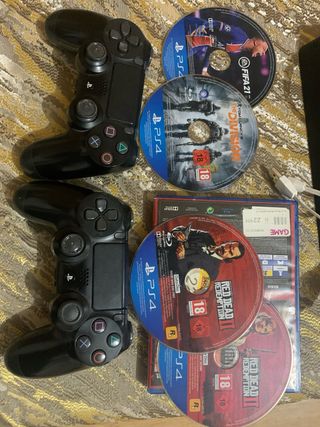 PlayStation 4 de 1TB en perfecto estado, con un mando y el juego Red Dead Redemption 2 (Edición Especial), también cuenta con gta v y fc 25. - Incluye consola y mando. - Juego Red Dead Redemption 2, edición especial físico y fc25 y gta V en digital. - Consola en excelentes condiciones. - tiene sus cableados. negociable!!