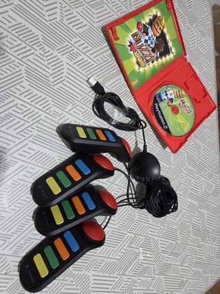 Mandos BUZZ! Buzzers + juego BUZZ! El Gran Concurso de Deportes para PS2 Play Station 2 y PS3 Play Station 3. Pack de mando BUZZ! con 4 Buzzers y juego para jugar con tu consola Play Station a auténticos concursos de televisión. En mi perfil tambien puedes comprar tu paquete completo con una consola PlayStation 2