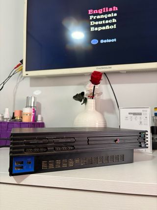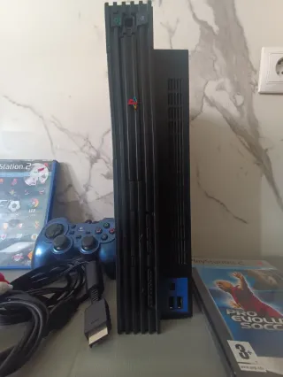 Consola PlayStation 2 modelo Fat en color negro, lista para disfrutar. - Incluye mando. - Incluye juegos: Esto es Futbol 2005 y Pro Evolution Soccer 2009. - Incluye cables y accesorios necesarios..