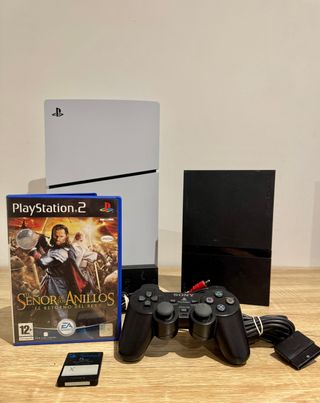 ¡Revive la leyenda! Vendo PlayStation 2 Slim en perfecto estado estético y de funcionamiento. 🚀 El pack incluye: ✅ Consola PS2 Slim (Diseño compacto) ✅ Mando DualShock 2 original ✅ Cable de alimentación y AV 🔌 ✅ Memory Card 8MB (¡Imprescindible para guardar!) 💾 ✅ Juego: El Señor de los Anillos: El Retorno del Rey (con manual original) 🗡️ 🛡️ 100% TESTEADA: Lente revisada, lee los discos a la primera. ¡Llegar y jugar! 🎮