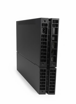 Consola de videojuegos Sony PlayStation 4 en color negro. - Diseño elegante y moderno. - Incluye cables de conexión.