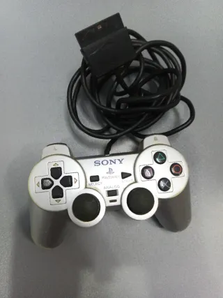 Mando original para PlayStation 2. - Color plateado y negro. - Conexión por cable. En perfecto estado de todo