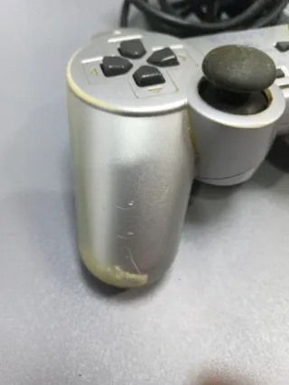 Mando original para PlayStation 2 no funciona no hace nada vendo tal cual en fotos está sin devolución para arreglar piezas o lo que quieras. - Color plateado. - Conexión por cable.