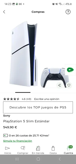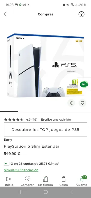 Consola PlayStation 5 Slim Estándar en color blanco y negro. - Modelo: PlayStation 5 Slim Estándar - Marca: Sony - Color: Blanco y negro Se vende con 2 mando + juego del fifa
