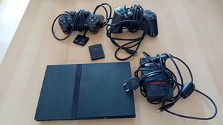 PlayStation 2 en perfecto estado. Incluye dos mandos y todos los cables necesarios para su funcionamiento. - Consola en buenas condiciones. - Dos mandos incluidos. - Se incluyen todos los cables.