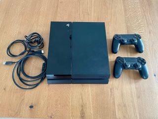 Consola PlayStation 4 en color negro, con dos mandos incluidos. - Incluye dos mandos DualShock 4. - Cableado necesario para su funcionamiento. Tiene su caja original