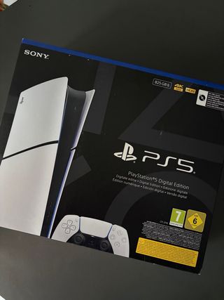 Consola PlayStation 5 Digital Edition en color blanco, prácticamente nueva. Incluye dos mandos para disfrutar con amigos. - Modelo Digital Edition sin lector de discos. - Dos mandos DualSense incluidos.