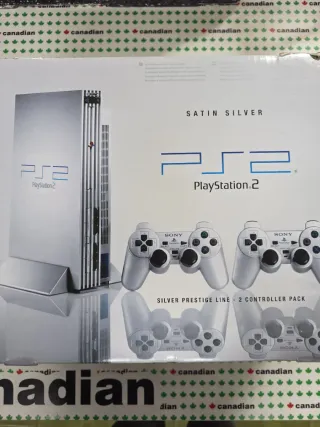 Consola PlayStation 2 en acabado satinado plateado. Incluye dos mandos. - Modelo PS2 Silver Prestige Line. - Incluye pack de 2 mandos. - Acabado satinado plateado. NO SE HACEN FOTOS DE LAS PLACAS. NO SE CAMBIAN CAJAS. Se hace entrega en mano en la tienda Canadian Games (Gran Via Fernando el Catolico n°2) o se envía por correos con gastos aparte. Los precios no son negociables ¡También compramos juegos y consolas! Consúltanos sin compromiso o llama al teléfono de nuestra tienda 96 3943057 # Retro, coleccionismo, coleccionista, PS2, play2 , Playstation 2