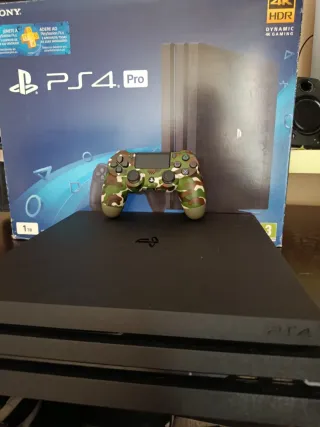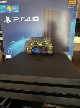 Se vende consola PlayStation 4 Pro en color negro, junto con un mando dualshock 4 V2 en estado decente con diseño de camuflaje. Funciona perfectamente la ps4. Mando sin drift. - Incluye caja original de la consola. - Mando con diseño exclusivo de camuflaje. - Versión 13.02. Entrega preferente en Zaragoza. 175€. Ahora 160€