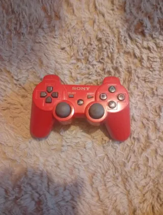 Mando de control para PlayStation 3 en color rojo. - Pequeño desperfecto (imagen) - Diseño ergonómico. - Botones de acción y análogos. - Conexión inalámbrica.