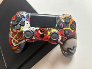 Consola PlayStation 4 con disco duro de 500GB, mando personalizado y tres juegos. - Mando con diseño multicolor. - Incluye 3 videojuegos.