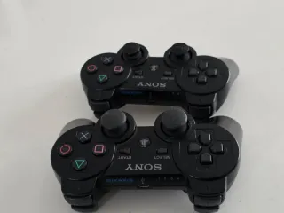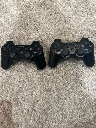 Lote de 2 mandos originales Sony SIXAXIS para PlayStation 3. Modelo original CECHZC1E. Ambos mandos funcionan perfectamente, todos los botones responden correctamente. Estado estético bueno con signos normales de uso. Compatibles con PlayStation 3. Se venden sin cable de carga. Envío disponible.