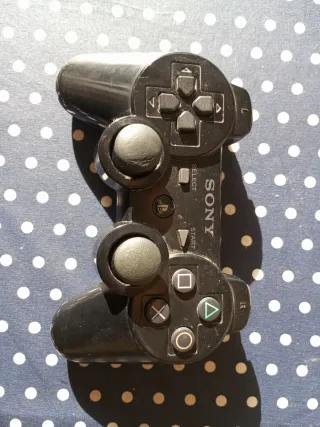 Mando original de PlayStation 3 con su cable. El botón start y el select no funcionan, y el ps no van bie. Por lo demas, si lo enchufas y consigues que el PA reaccione, conecta bien inalambrico y la sensibilidad de los joystick funciona guay.