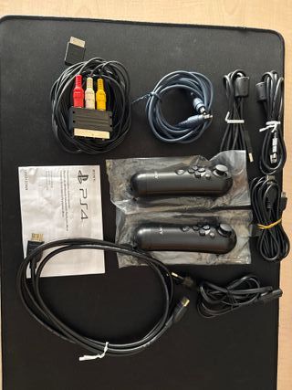 Pack de accesorios para PlayStation 3 que incluye dos mandos de navegación y varios cables. - 2x Mando de navegación Sony. - Cable SCART con adaptadores RCA (rojo, blanco, amarillo). - Cable óptico. - Cable HDMI. - Cable de alimentación. - 3 cargadores de mover/navigator - 2x correas para move - regalo la mochila PS3 oficial de la foto No envío. No vendo por separado.