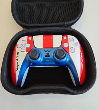 Hasta 20€ Menos Si Me Entregas Tu Antiguo Mando De Ps5 Con Drift Etc.. Mando de PlayStation 5 con un diseño único inspirado en el Atlético de Madrid. - 1 mes en el que puedes devolverlo o cambiarlo. - 3 Meses de garantía. - Perfectas Condiciones. - Colores rojo, blanco y azul. - Inscripción Aupa Atleti en un lateral. - Acabado brillante.