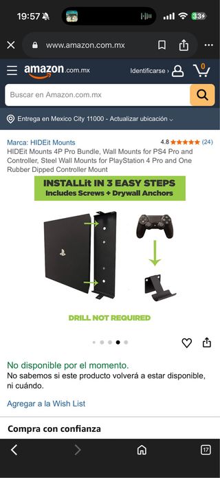 Soporte de pared de acero para PlayStation 4 Pro y mando. - Incluye tornillos y tacos para instalación. - Diseño que permite instalarlo en 3 sencillos pasos. -