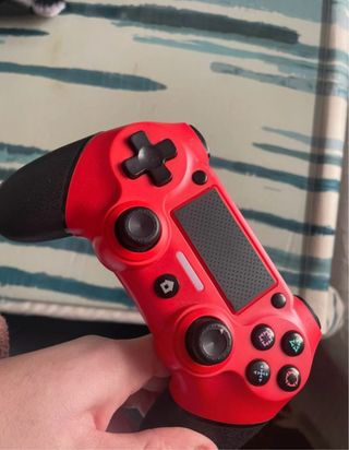 Mando de control en color rojo y negro. - Diseño ergonómico. - Botones de alta respuesta. - Compatible con PS4.