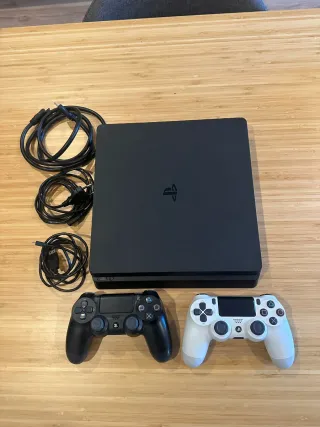 PlayStation 4 Slim de 1TB con mando y varios juegos. Version 13.02. Todo funciona perfectamente y Precio Negociable (ofertas serias) Incluye: - Mando con funda.🎮 - Juegos incluidos: FIFA 17, Batman Arkham Knight, PES 2017, Battlefront II, Call of Duty Black Ops III. - 🔌Cables de cargador del mando y HDMI incluidos.
