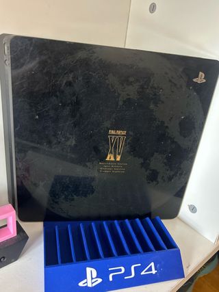 Consola PS4 edición limitada de Final Fantasy XV y mando - Diseño negro con motivos del juego. - Incluye el cable de alimentación. -Incluye juegos virtuales,de la última vez que jugué,hay que actualizar porque desde hace una año que no juego...