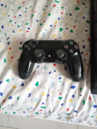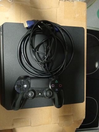 Consola PlayStation 4 Slim de 500GB en color negro, en impecable estado. Incluye un mando original. - Capacidad de 500GB. - Mando DualShock 4 original.y 4 juegos.
