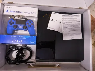 Consola Playstation 4 en color negro, con mando incluido. - Mando de color azul. - Incluye cable de alimentación.