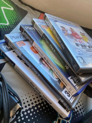 Consola PlayStation 4 en color negro + mando. REGALO 2 mandos y 4 juegos a elegir de la última foto. Negociable si se prefiere optar por más juegos a cambio de los mandos. También se puede vender por separado.