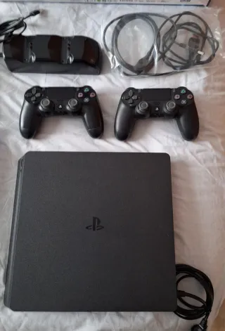 Consola PlayStation 4 con 1TB de almacenamiento. Dos mandos, uno original. 6 juegos. funciona a la perfección. - Modelo Slim. - Color negro.