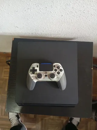 PlayStation 4 Slim en buen estado. Incluye: - 1 mando. La consola esta en perfecto funcionamiento, pero tiene defectos esteticos como se ve en la foto, el mando funciona correctamente.