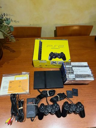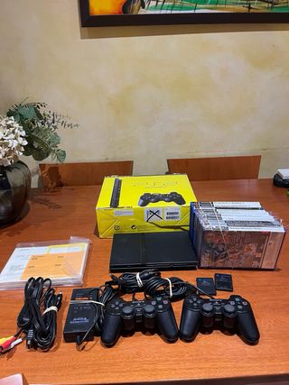 LOTE PLAYSTATION 2 CON CAJA COMPLETA, DOS MANDOS, 2 MEMORI CARD, 5 JUEGOS COMPLETOS Y 4 SIN MANUAL.