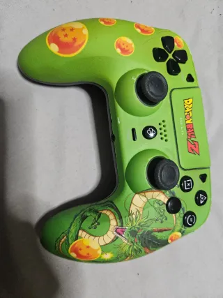 Mando personalizado de PlayStation 4 con temática de Dragon Ball Z. Incluye botones padre atras del mano - Diseño verde con esferas del dragón y Shenlong. - Logo de Dragon Ball Z en la parte frontal.
