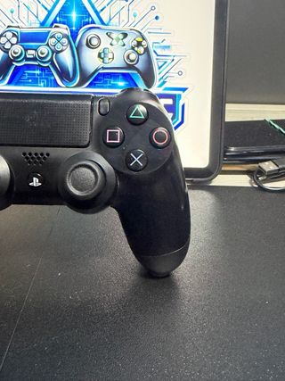 Mando de PlayStation 4 en color negro, en excelente estado. - Diseño ergonómico. - Botones y joysticks funcionales. - Suena alguna cosa suelta cuando se mueve pero funciona bien.