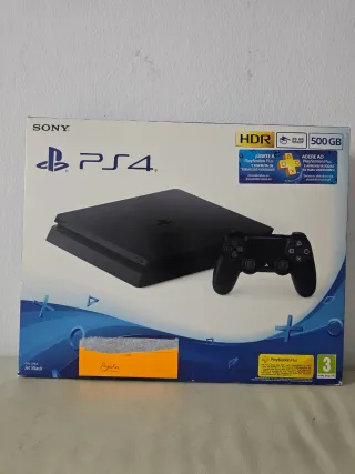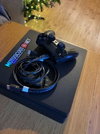 Consola PlayStation 4 Slim en color negro, con dos mandos y cinco juegos. - Juegos incluidos: Battlefield 1, Battlefield V, Battlefield 2042, FIFA 17, FIFA 25. - Dos mandos DualShock 4. - Incluye accesorios para mandos. - tiene un problema en la lectura del disco pero tiene su truco, simplemente dar unos toques justo en la parte de arriba por donde se introduce el disco al estilo código morse y te lo coge sin problemas. Si eres jugador diario llega un momento en que te lo coge sin problemas y sin los toques.