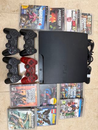 Se vende consola PlayStation 3 en color negro, junto con cuatro mandos y un total de 19 juegos. - Incluye los siguientes juegos: - The Last of Us - Resistance - Uncharted - Grand Theft Auto V - Alone in the Dark: Inferno - Assassin's Creed - Battlefield Hardline - Splinter Cell Blacklist - Medal of Honor: Warfighter - LEGO Star Wars III: The Clone Wars - LEGO Indiana Jones 2: The Adventure Continues - LEGO Pirates of the Caribbean - LEGO Batman 2: DC Super Heroes - Minecraft - Disney Infinity - FIFA 12 - F1 2011 - LittleBigPlanet