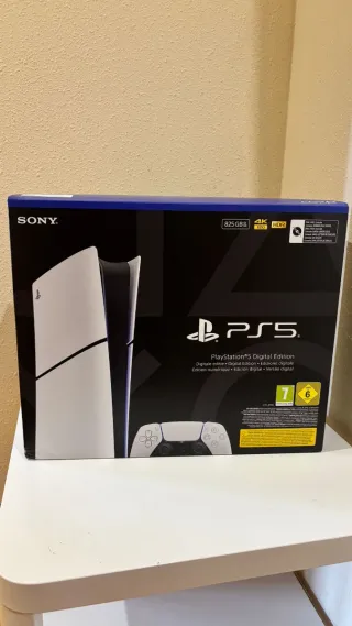 Consola PlayStation 5 Digital Edition en color blanco. Incluye mando DualSense. - Capacidad de 825 GB. - Compatible con 4K y HDR. - Incluye tarjeta PlayStation de 20€. completamente nueva sin abrir