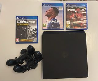 Consola PlayStation 4 Slim de 1TB en color negro, mando y con 6 videojuegos. Funciona perfectamente, apenas ha tenido uso. SE ENVIA EL MISMO DÍA - Assassin's Creed IV: Black Flag - FIFA 21 - Metal Gear Solid V: Ground Zeroes - Super Bomberman - FIFA 20 - NBA 2K si la quieres sin mando 20€ menos .
