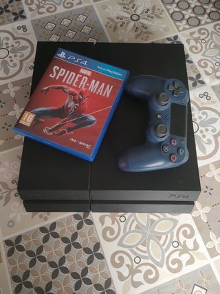 Consola PlayStation 4 de 1TB en color negro. - Incluye el juego Marvel's Spider-Man. - Mando DualShock 4 azul. Se le ha hecho mantenimiento, el mando tiene joysticks nuevos originales.