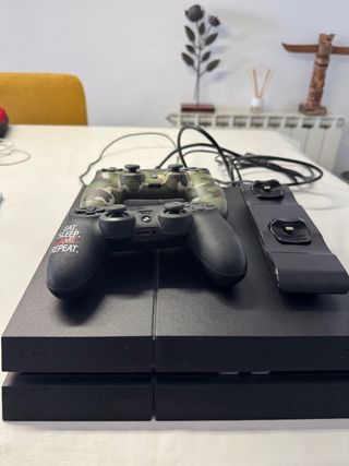 PlayStation 4 en perfecto estado. De 1,77 Tb. Es una consola elegante y compacta, ideal para jugar tus videojuegos favoritos. - Consola en excelentes condiciones. -Se vende con 8 juegos. -Dos mandos. -Cable HDMI. -Auriculares de regalo. Funcionan perfectos, lo unico que el protector plastico de las orejeras, se desmonta. Como muestea foto. - Accesorio para mando para tener mas tacto en el movimiento y alargo para L2 y R2