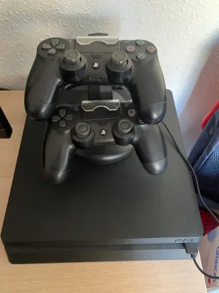 Consola de videojuegos PlayStation 4 Slim en color negro. 2 Mandos en muy buen estado con base cargadora 3 Juegos de PS4