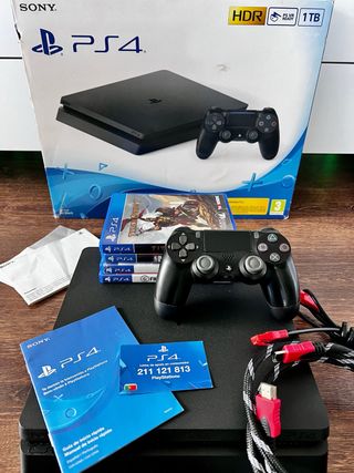 Consola PlayStation 4 en su caja original, con disco de 1 TB, mando, cables, HDMI y Ethernet, Juegos. La consola prácticamente no ha tenido uso, funciona perfectamente al igual que el resto de componentes está lista para disfrutar. 👉👉👉👉 Se envía el mismo día 24 H