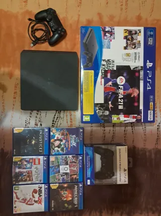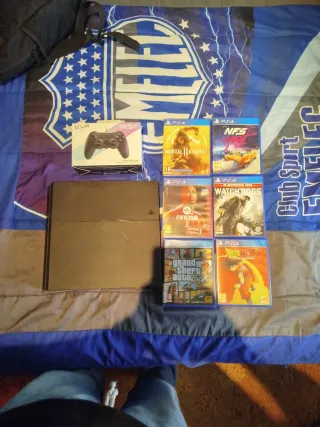 Vendo playstation 4 slim 500 GB en buen estado y funciona correctamente. Incluye un mando y los juegos mostrados y dos mas que no aparecen call of duty blackops3 y Mafia 3. Por supuesto incluye los cables necesarios. No hago envios, entrega a mano, soy de Móstoles . Mas información me escriben. Gracias