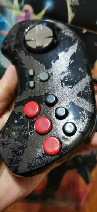 Vendo el mando Fighter's Pad exclusivo de la edición limitada japonesa del videojuego Guilty Gear Xrd SIGN del estudio Arc System Works. El mando está diseñado por Sanwa Denshi y cuenta con seis botones de acción en la parte frontal (a los cuatro símbolos clásicos de PlayStation se les unen R1 y R2), ideal para los versus. Los botones L1 y L2 están distribuidos igual que un mando de SNES y de igual modo tan solo tiene una cruceta sin rastro de sticks analógicos. Además conserva los botones PS, Share y Options. Usado tan solo una vez y conservado en perfecto estado. Es compatible con PS3 y PS4.