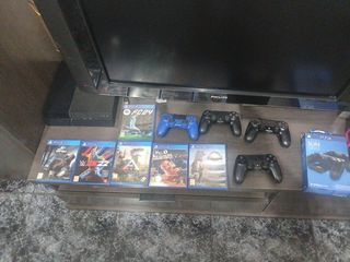 Se vende PlayStation 4, con 6 juegos y 4 mandos, los cuales sólo va 1, el azul no va bien el jostyck derecho y hay dos mandos qué hay que cambiar la batería, también se vende cargador de 2 mandos. También se vende los juegos por separado a 10 €, si se prefiere.