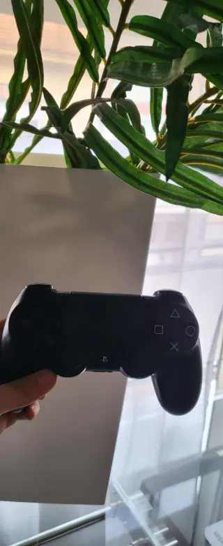 Se vende consola PlayStation 4 con mando y cables. - Incluye mando. - Incluye cables de conexión. La ps4 tiene recién cambiada la pasta térmica y tiene capacidad de casi 900gb es la ps4 slim y el único problema que tiene es que el ventilador le cuesta arrancar para dar ventilacion a la consola y la parte de el disco duro esta destapada