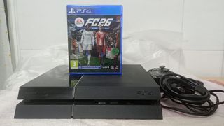 Consola PlayStation 4 en color negro, junto con el videojuego EA FC 26 (el que salió en septiembre, así que casi nuevo, incluso con el código de regalo sin usar) - Incluye mando. - Incluye cableado.