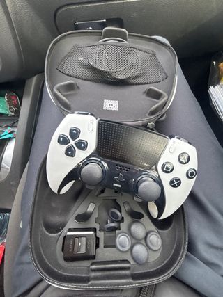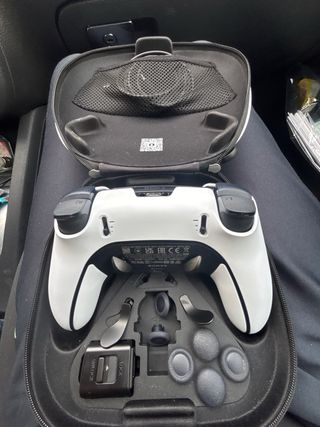 Mando inalámbrico DualSense para PlayStation 5 en acabado blanco y negro. Incluye accesorios. - Mando DualSense para PS5. - Color blanco y negro. - Incluye accesorios de personalización. Total mente nuevo sin usar se da con garantia de tres meses Tiene palancas para la parte trasera de diferentes tamaños