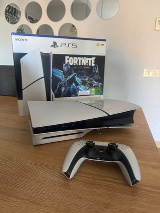 Consola PlayStation 5 Slim con lector de disco. - Comprada en Enero de 2025. - Solamente unas cuantas horas de juego y siempre ((usada de forma horizontal)). - Mando DualSense, en las fotos puede verse el nulo deterioro de joysticks. - Se incluye funda de transporte para el mando. - Se incluye con todos sus manuales y plásticos. - No incluye el código del DLC de Fortnite. Sólo para entrega en mano en Almería.