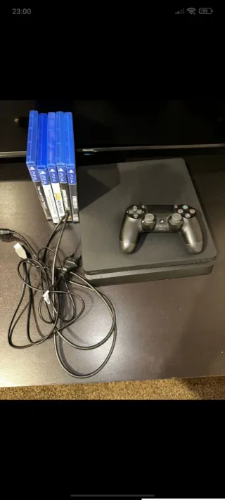 PlayStation 4 Slim en perfecto estado. Incluye consola y mando. - Capacidad de 1TB. - Mando inalámbrico DualShock 4. - Cables de alimentación y HDMI incluidos. Ancharted 4 God of war Ufc 3 Fifa Gta San andreas #juegos Ps5 PlayStation gratis Mando Juego God Eléctrico