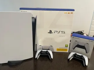 Preciosa consola Playstation 5 slim digital en color blanco. Incluye dos mandos, también blancos, en perfecto estado con su caja. - Consola impecable. - Dos mandos a juego.